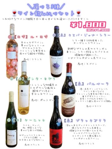 今回は『ワイン選べる3種飲み比べ』のご紹介です!🍇💫