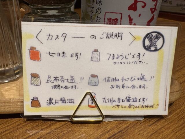 わさび塩と昆布茶塩は今回からカスターセットに入ったので是非ご来店して試してみてください!
