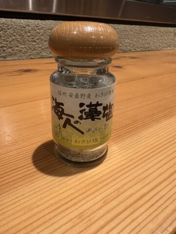 【わさび塩❓❓】 2025.11.16 みなさんこんにちわ! 葛西彦酉の優星です! 最近冬系の曲めっちゃ聴いちゃってます!🎧 さて、本日は少し前にカスターセットが変わったのをご紹介したと思いますがその中に追加された、海人の藻塩のわさび塩を紹介します! こちらは長野県安曇野産のわさびと瀬戸内海の海水と国産の海藻を原料に作られた藻塩を使用しており、塩味がまろやかで素材の味を引き立てる商品になっています!🧂 様々な料理に合うのでぜひご来店して試してみてください! ご来店お待ちしております!😋