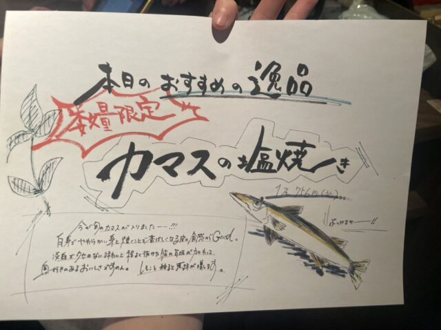 【ぶっかませー‼️】 2025.11.23 みなさんこんにちわ! 葛西彦酉の優星です! もう11月後半今年も終わりですね! 忘年会などの予約もどしどしお待ちしてます! さて、本日は今旬のかますが入ったのでご紹介します!🐟 白身でやわらかい身と焼く事で香ばしくなる皮の食感がgood!👍 淡白でクセのない味わいと程よく抜けた脂の旨味が奥行きのある美味しさです!😋 レモンを絞ると風味が増します!🍋 ぜひご来店お待ちしております!