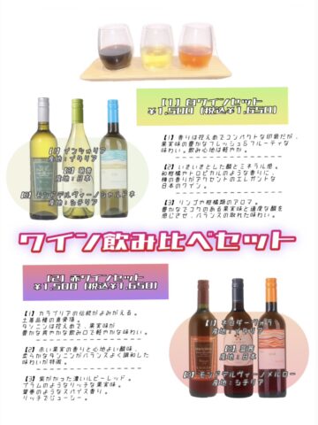 本日は 『ワイン3種飲み比べセット』赤セット、白セットの2種類のご紹介です!🍷