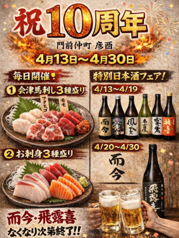 さて、本日は門前仲町店がオープンしてから10周年になり、イベントをやるみたいなのでそちらの告知をさせていただきます!